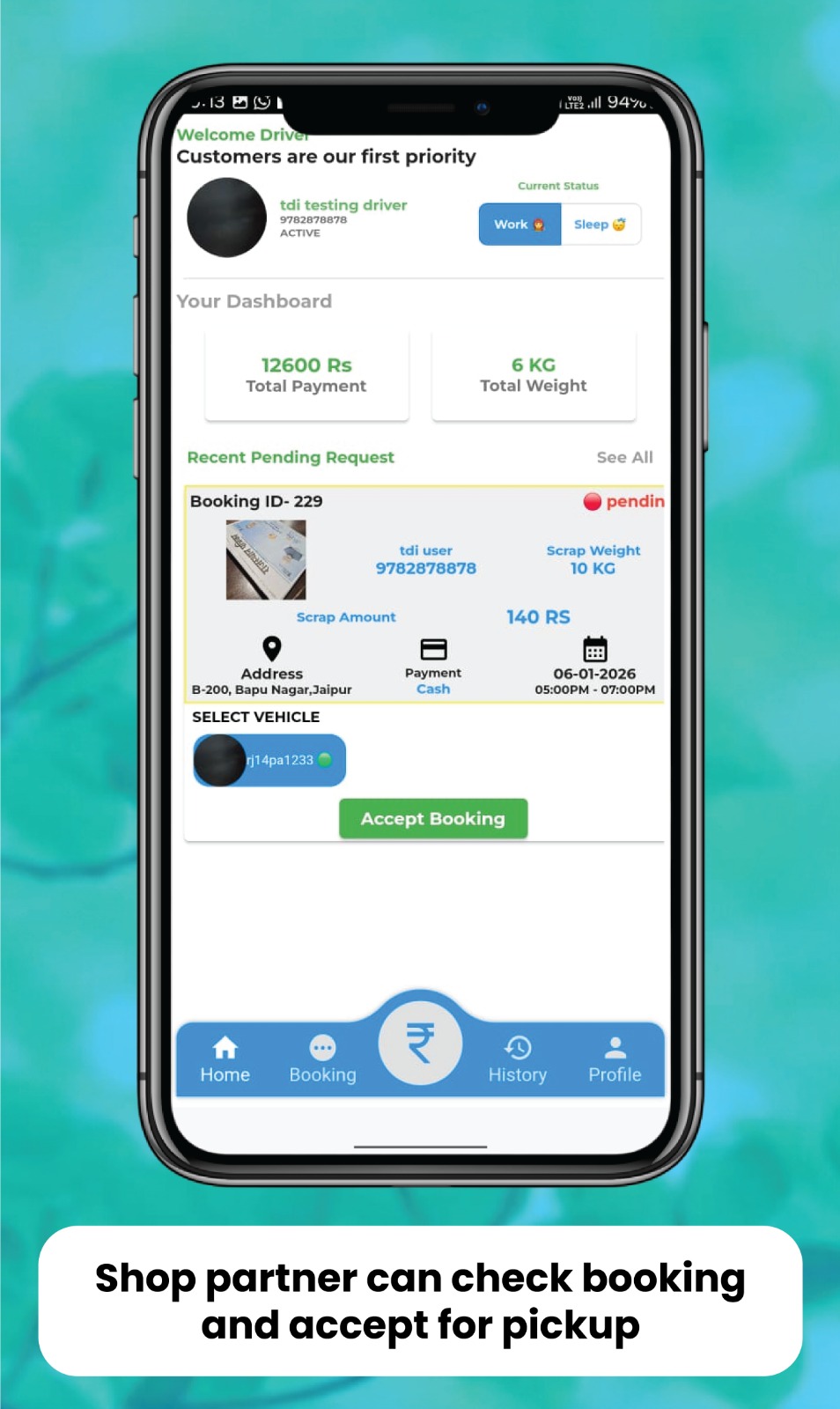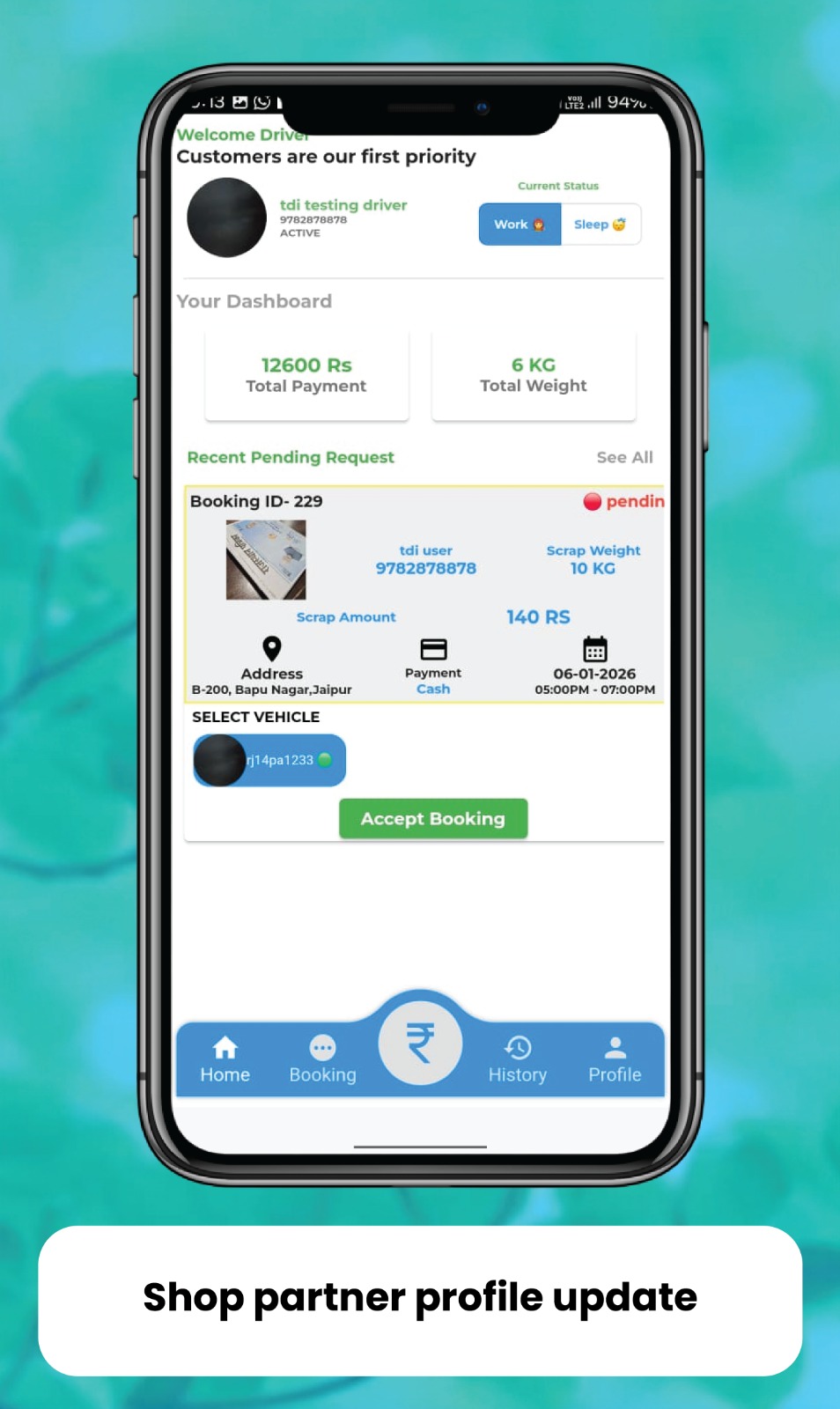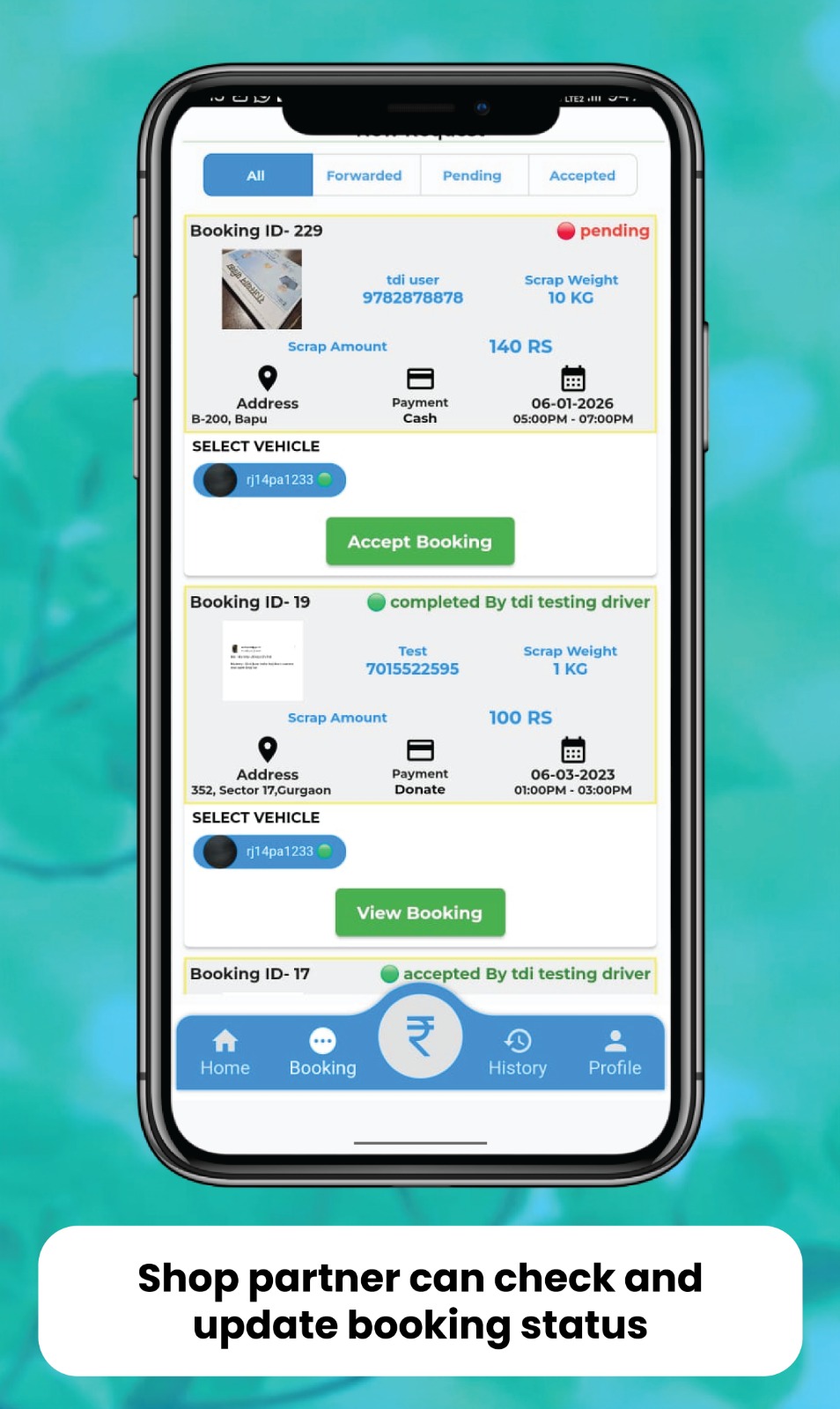 • Accept & Update Booking Status easily through the app